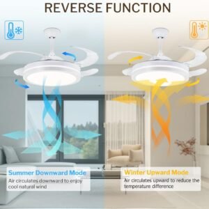 Invierte el giro de las aspas con solo pulsar un botón. En modo inverso, el ventilador empuja el aire caliente acumulado en el techo hacia abajo, mejorando la eficiencia de la calefacción y ahorrando hasta un 15% en facturas de invierno.